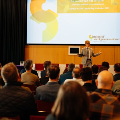 Met energie, humor en scherpte nam dagvoorzitter Thijs de Lange ons mee in een programma vol inspiratie, ontmoeting en inzichten over inclusie en samenwerking tussen generaties. Werkgevers deelden hun verhalen over hoe jong en oud elkaar versterken op de werkvloer – en hoe diversiteit loont.